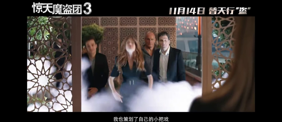 魔术犯罪电影《惊天魔盗团3》10月22日发布定档预告及海报,将于11月14日在中国内地上映,这是该系列电影首次实现中国内地与北美同步上映。时隔十二年,“初代四骑士”终于再度集结。他们在观众翘首以盼的舞台上,献上了极具视觉冲击力的舞台消失术。而这场震撼回归的背后,正预示着一场惊天大案即将席卷而来,他们将直面“史上最贵钻石”的高难盗窃挑战,彻底拉满观众对这场九年之约的期待。